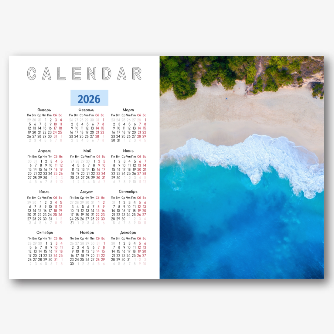 Бесплатный шаблон рекламного календаря-плаката онлайн для туроператора, турагентства. Создайте макет своими руками в конструкторе календарей.