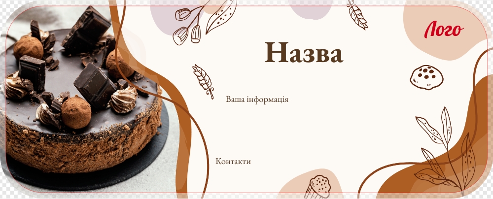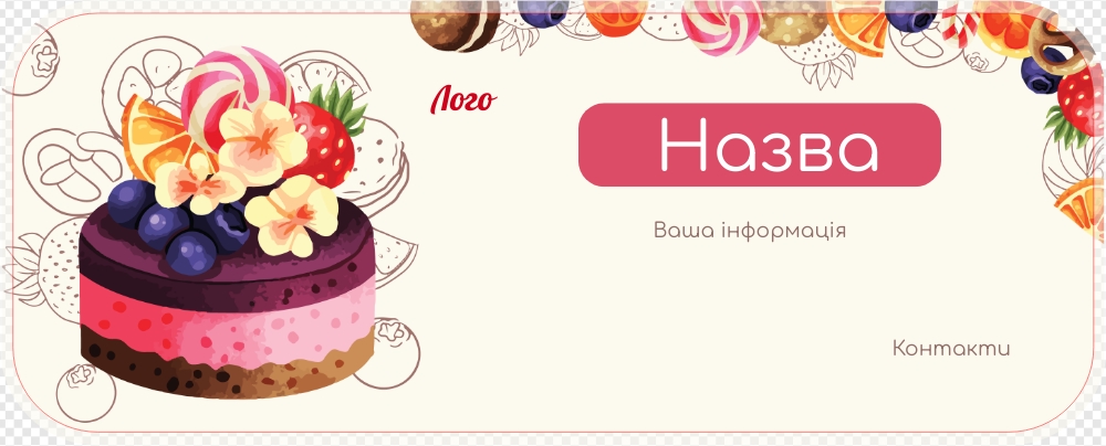 На этой наклейке изображен белый торт с шоколадной поливкой и свежими фруктами сверху. Розовый фон с маленькими снежинками создает праздничную атмосферу. Эта упаковка идеально подойдет для упаковки фруктовых тортов на любой праздник.