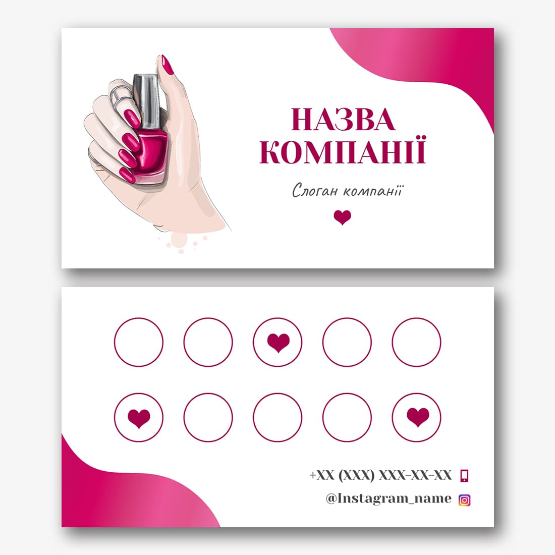 Бесплатный шаблон визитки для салона красоты, мастера маникюра. Создайте макет визитки своими руками в конструкторе визиток.