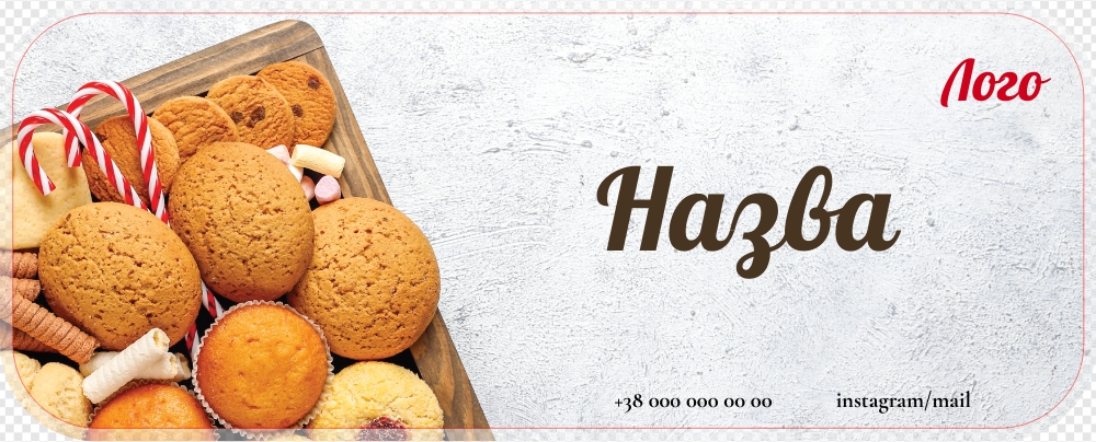 Шаблон наклейки на упаковку для печива на білому тлі з жовтим елементом у центрі, де зображено шоколадне печиво. Дизайн яскравий та привабливий, допомагає продукту виділитися на полицях.