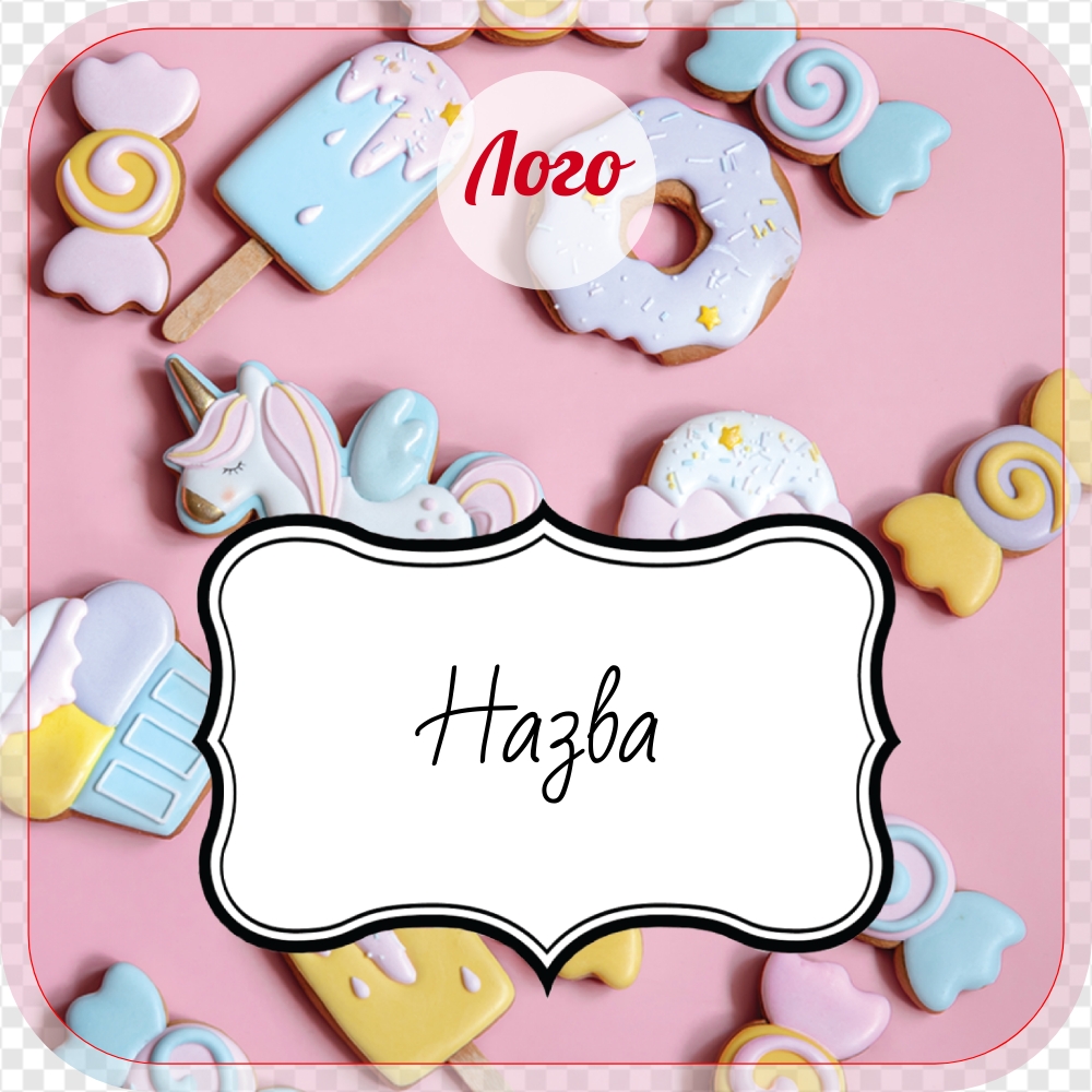 Цей шаблон наклейки ідеально підійде для упаковки новорічних пряників. На темно-сірому тлі зображені різноманітні пряники у вигляді зірочок, цукати, спеції та фрукти. На верхівці цього солодкого міксу розташувався пряниковий чоловічок, покритий шоколадом.