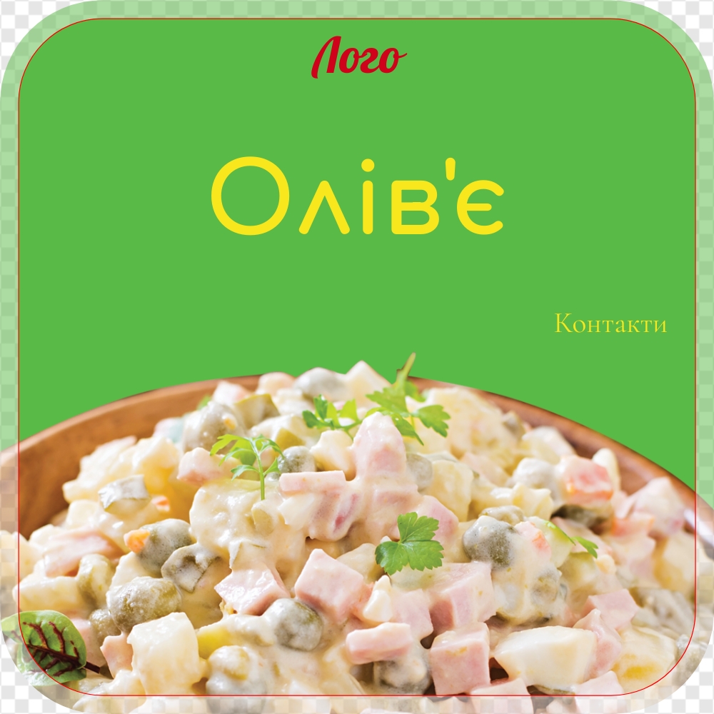 Наклейка призначена для упаковки овочевих салатів, що ідеально підходить для того, щоб привернути увагу покупців до вашого продукту. Салати на тарілках виглядають свіжими та апетитними, а дизайн із натуральними силуетами овочів та жовтими смугами додає додатковий шарм.
