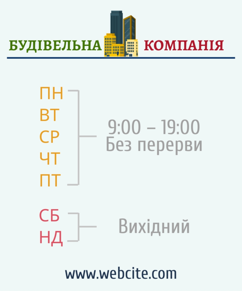 Шаблон наклейки на двері дозволяє представити ваш заклад та інформувати відвідувачів про режим роботи та пропоновані послуги. Прямокутна наклейка з подвійною білою рамкою створює привабливий образ. У верхній частині зліва розміщено назву вашого закладу, що допоможе впізнавати бренд. Праворуч від назви розташовані три рядки із зображеннями та написами, що представляють основні пропозиції вашого закладу: 'БАР' із зображенням келиха, 'КАВА' із зображенням чашки та 'ЗАКУСКИ' із зображенням тарілки. У нижній частині наклейки яскраво виділено інформацію про режим роботи: 'Працюємо з 10:00 до 22:00 без вихідних'. Цей шаблон наклейки допоможе привернути увагу відвідувачів, дати їм ясне уявлення про ваш заклад та стимулювати відвідування у зручний для них час.