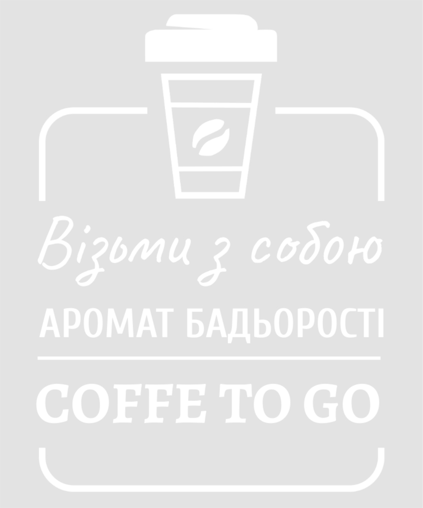 Шаблон наклейки є кумедне зображення склянки з ніжками, який ніби біжить. Цей дизайн надає наклейці оригінальності і привертає увагу тих, що проходять повз. У центральній частині наклейки розташоване зображення склянки, що біжить, а зверху напис "Кава з собою", яка ясно вказує на можливість взяти свіжоприготовлену каву з собою. Цей шаблон підходить для кав'ярень, кафе або закладів, які пропонують каву на винос. Він покликаний привернути увагу та створити асоціацію з мобільністю та зручністю для клієнтів, яким важливо насолоджуватися кавою у будь-якому місці та у будь-який час.