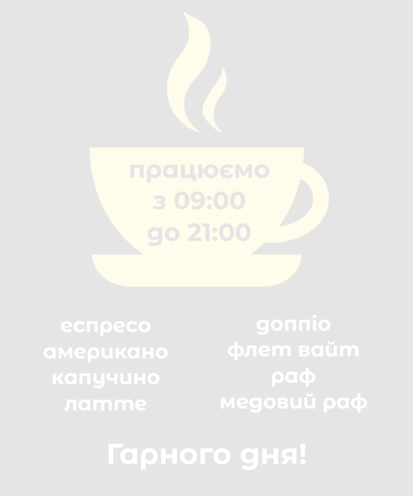Шаблон наклейки призначений для використання на дверях кав'ярень, кафе або закладів, які пропонують каву на винос. У рамці із закругленими кутами зверху розташоване зображення склянки з ароматною кавою, яка привертає увагу та викликає бажання отримати свіжоприготовлений напій. Усередині рамки знаходиться напис "Візьми з собою аромат бадьорості. Coffe to go", який звертає увагу на можливість замовити каву на виніс і насолодитися її смаком будь-де і в будь-який час. Цей шаблон допоможе залучити клієнтів, яким важлива мобільність та можливість насолоджуватися свіжою кавою поза закладом.