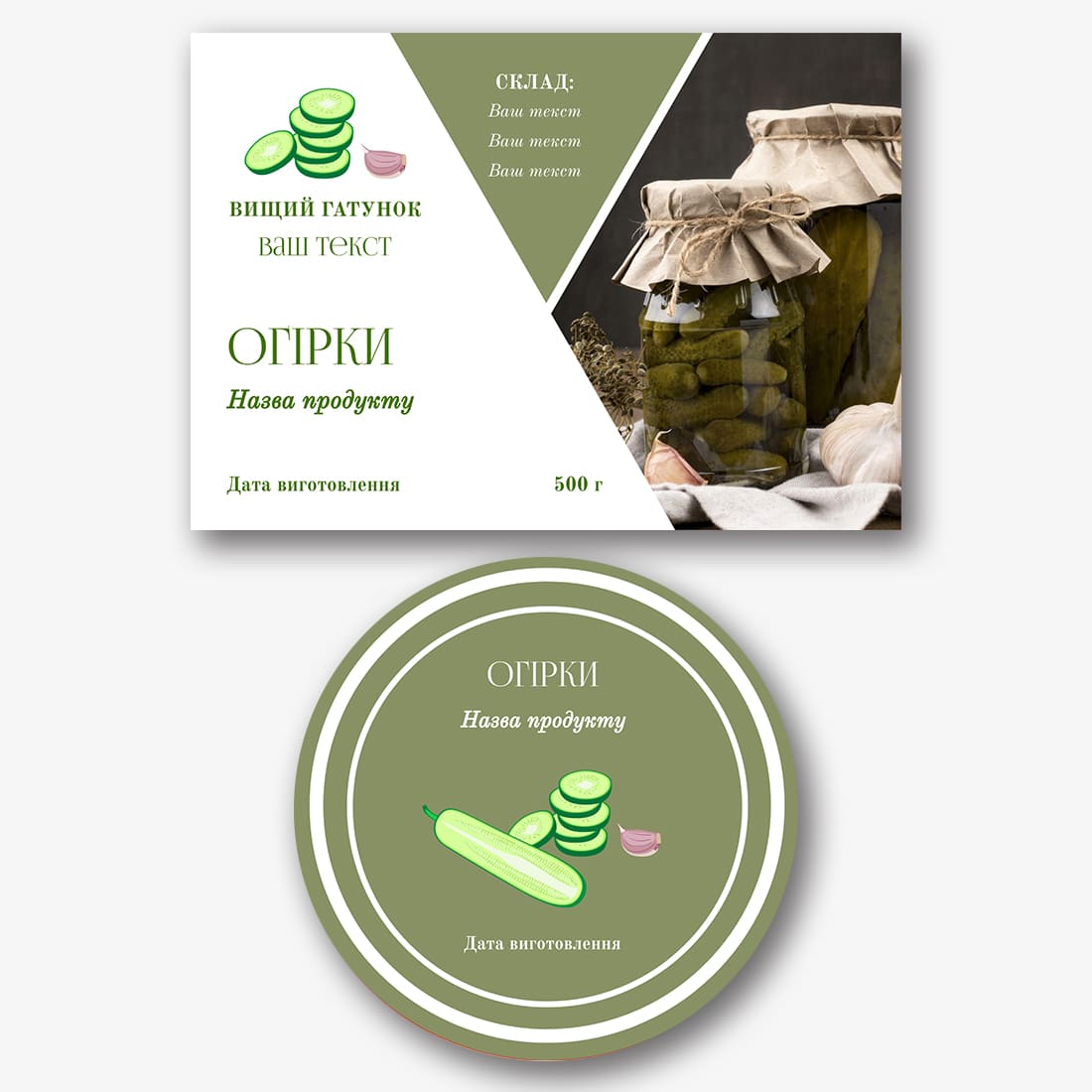 Безкоштовний шаблон етикетки для виробника маринованого зеленого горошку. Створіть макет своїми руками в онлайн-конструкторі етикеток.